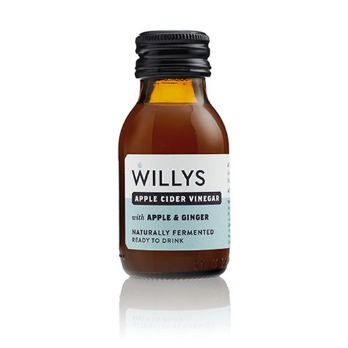This perky pick-me-up is an easy way to get your daily dose of Willy’s live apple cider vinegar with ginger. This ready to drink apple cider vinegar shot containing the live mother is the perfect way to consume your daily dose of wellness. This unique blend of 48 wild apple varieties with ginger and apple juice creates a perfect balance of sweet and sour and is sure to put a spring in your step. Due to the fermentation process willy’s acv contains wide array of health benefits and overall wellness.
